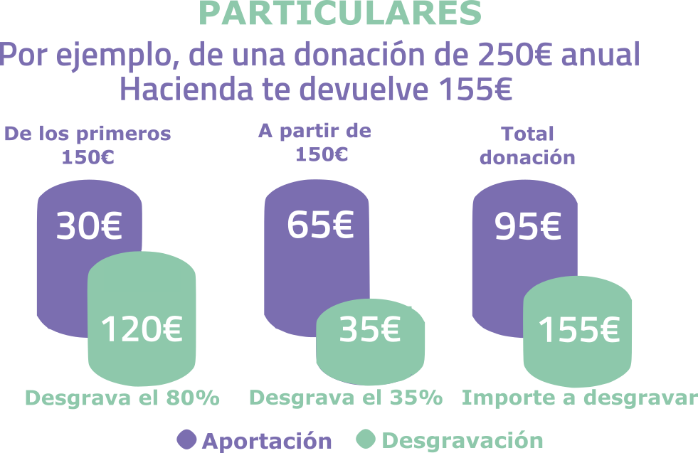 Los primeros 150€ que dones desgravarán el 80% y a partir de 150€ desgravarán el 35%.