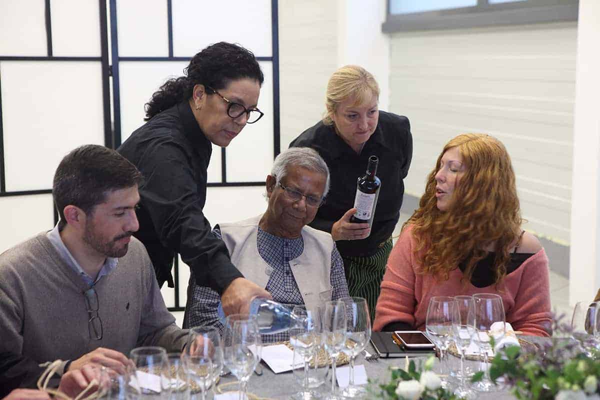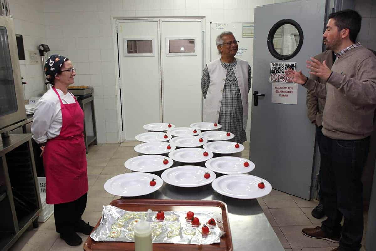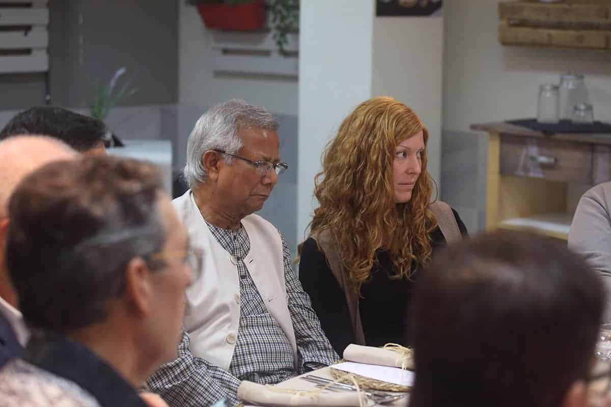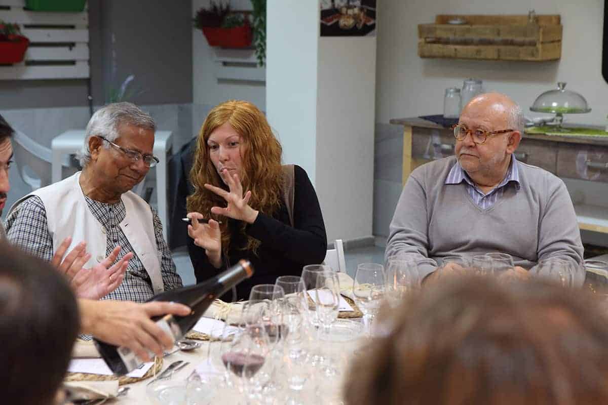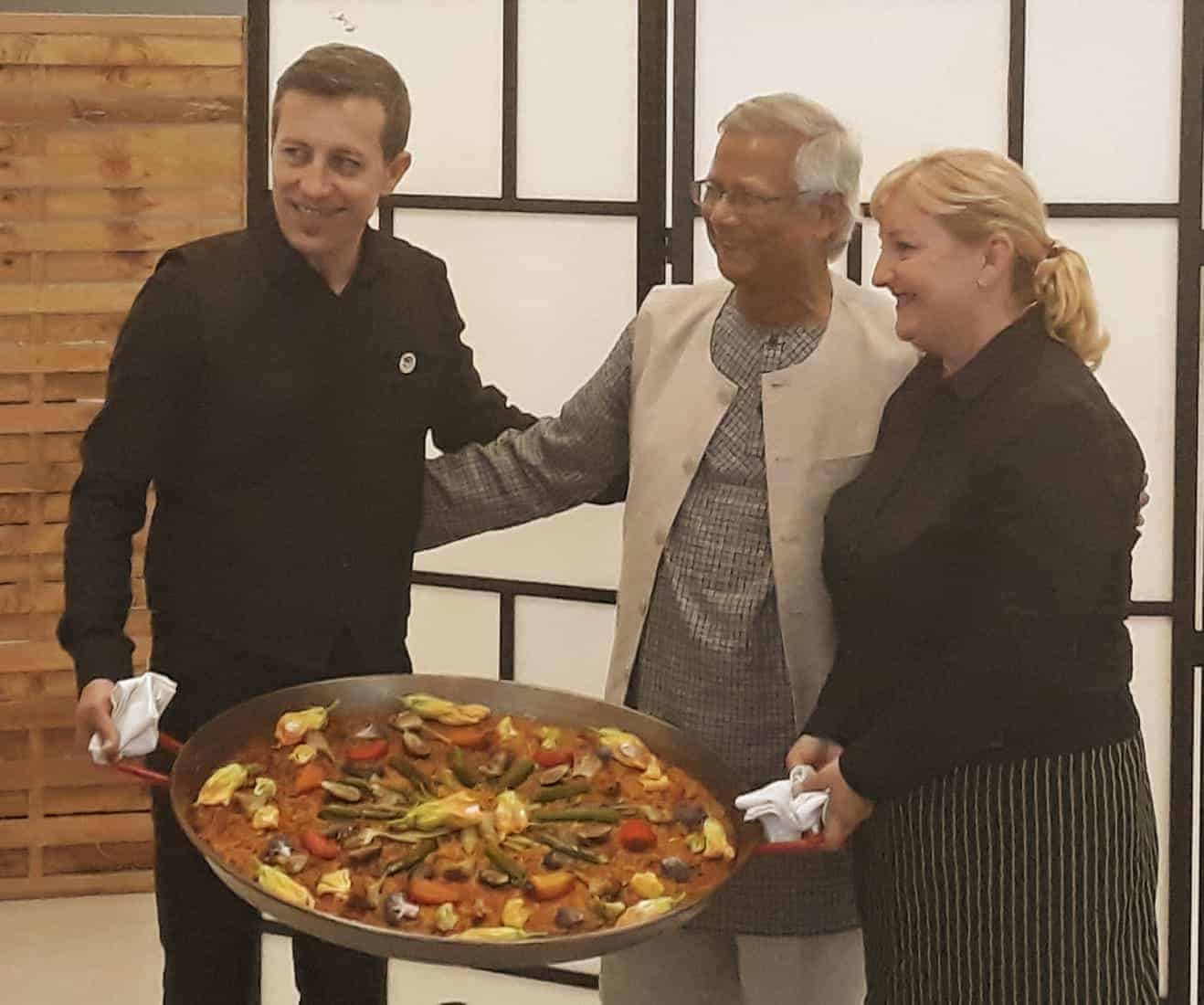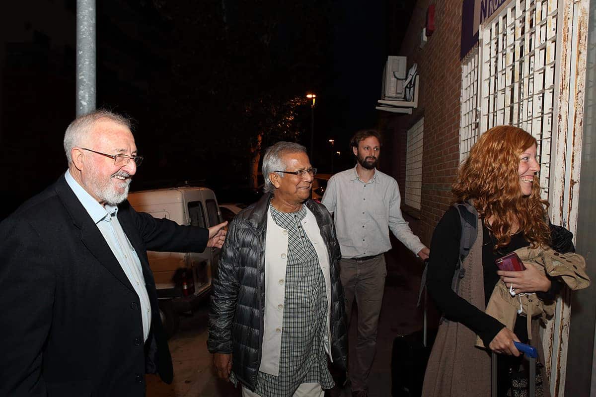 Tras las reuniones, tuvo lugar una cena servida por Novaterra Catering Sostenible, con la colaboración de Caixa Popular, en la que pudieron debatir con el profesor Yunus la Concejala de Economía del Ayuntamiento de Valencia, Sandra Gómez, Consol Castillo, Concejala de Bienestar Social del Ayuntamiento de Valencia, Ramón Cardona, Coordinador de FIARE Banca Ética en Valencia, Joan Mir, Director General de Aneccop, Enric Luján, Director de Florida Grup Universitari, Paco Pons, Vicepresidente de Novaterra y Emili Altur, Vicepresidente 3º de la Diputación de Valencia, junto a Jaume, Sergi y Andrea de Tandem Social, y Christian Mecca de Novaterra Catering.