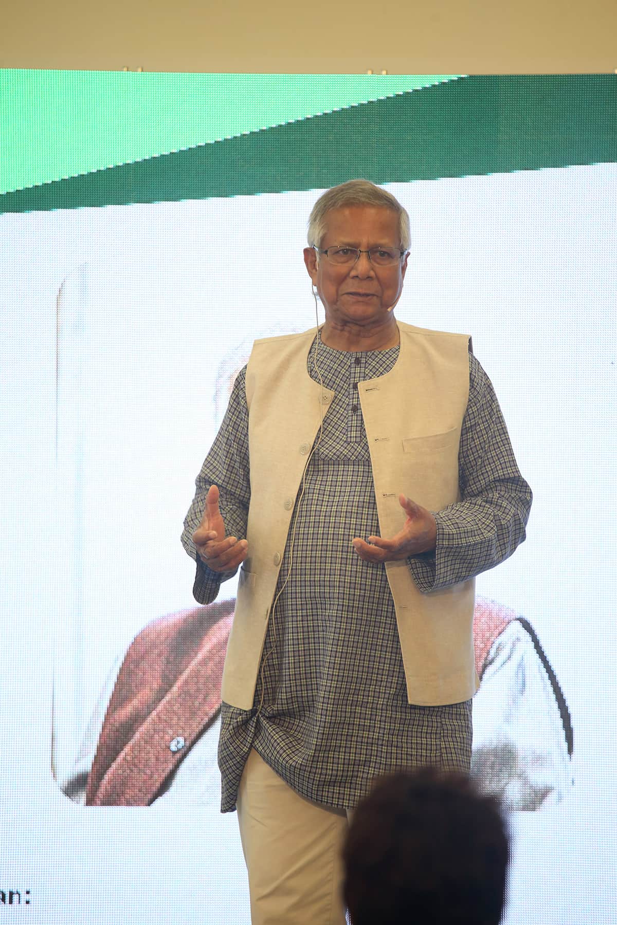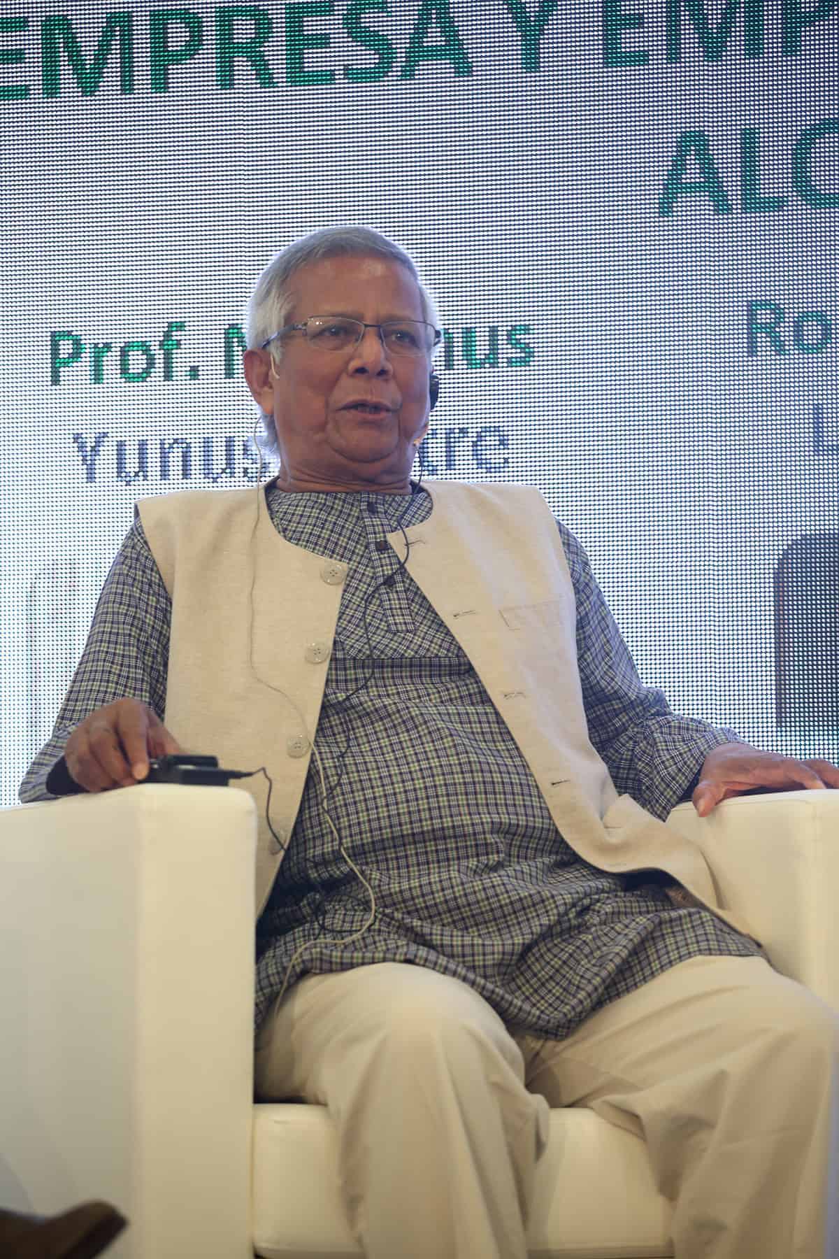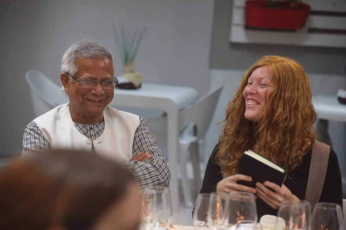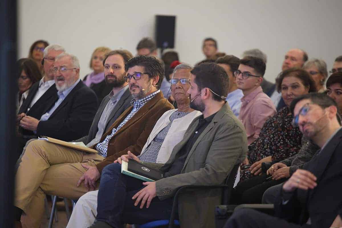 Era la primera vez en mi vida que a la entrada de un conferenciante en la sala veía levantarse y aplaudir a toda una sala de 200 personas que ansiaban escuchar al profesor y sus experiencias. Sin duda, no era para menos, y el discurso del profesor Yunus estuvo a la altura de la ovación, llenándonos de ideas, y de esperanza.