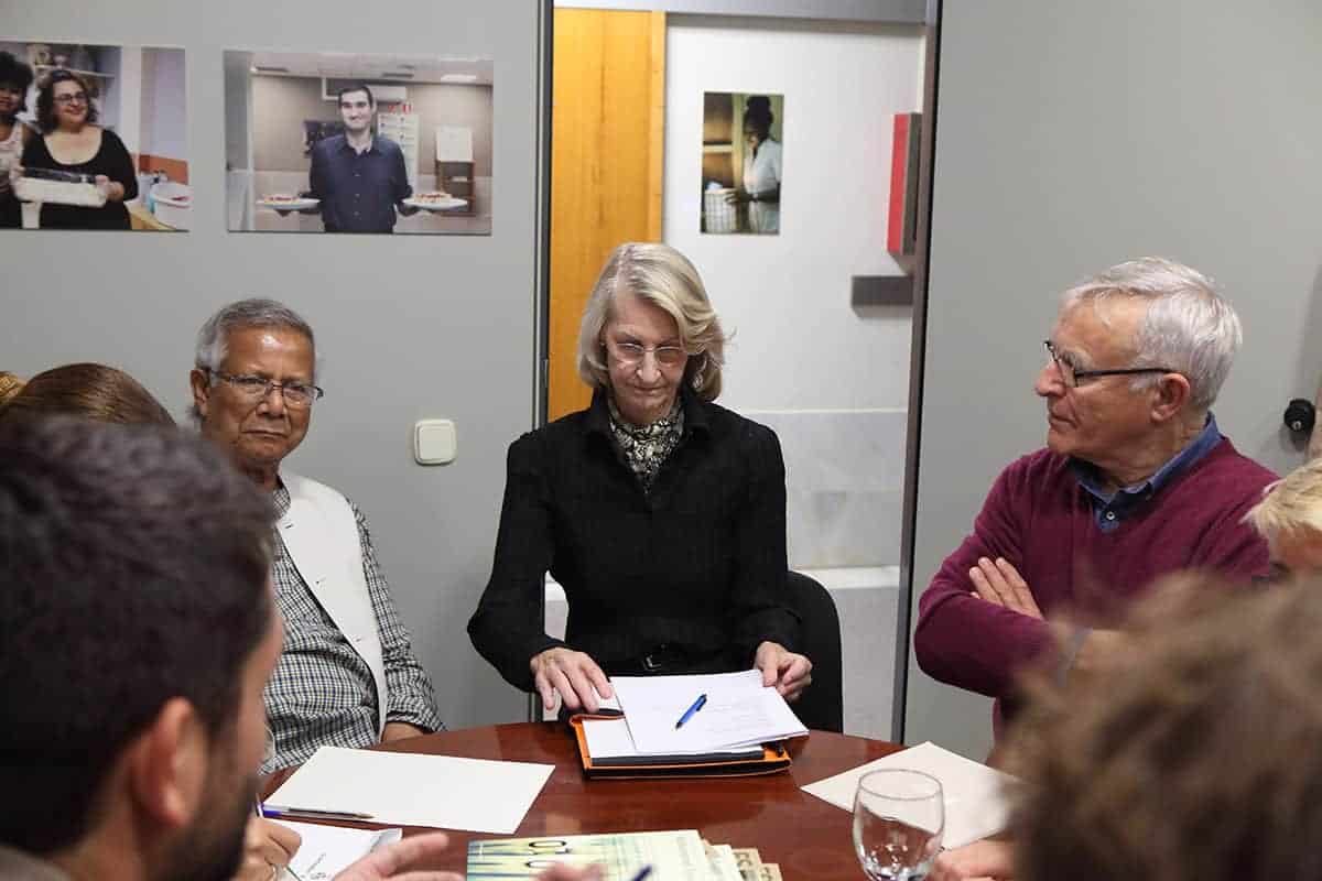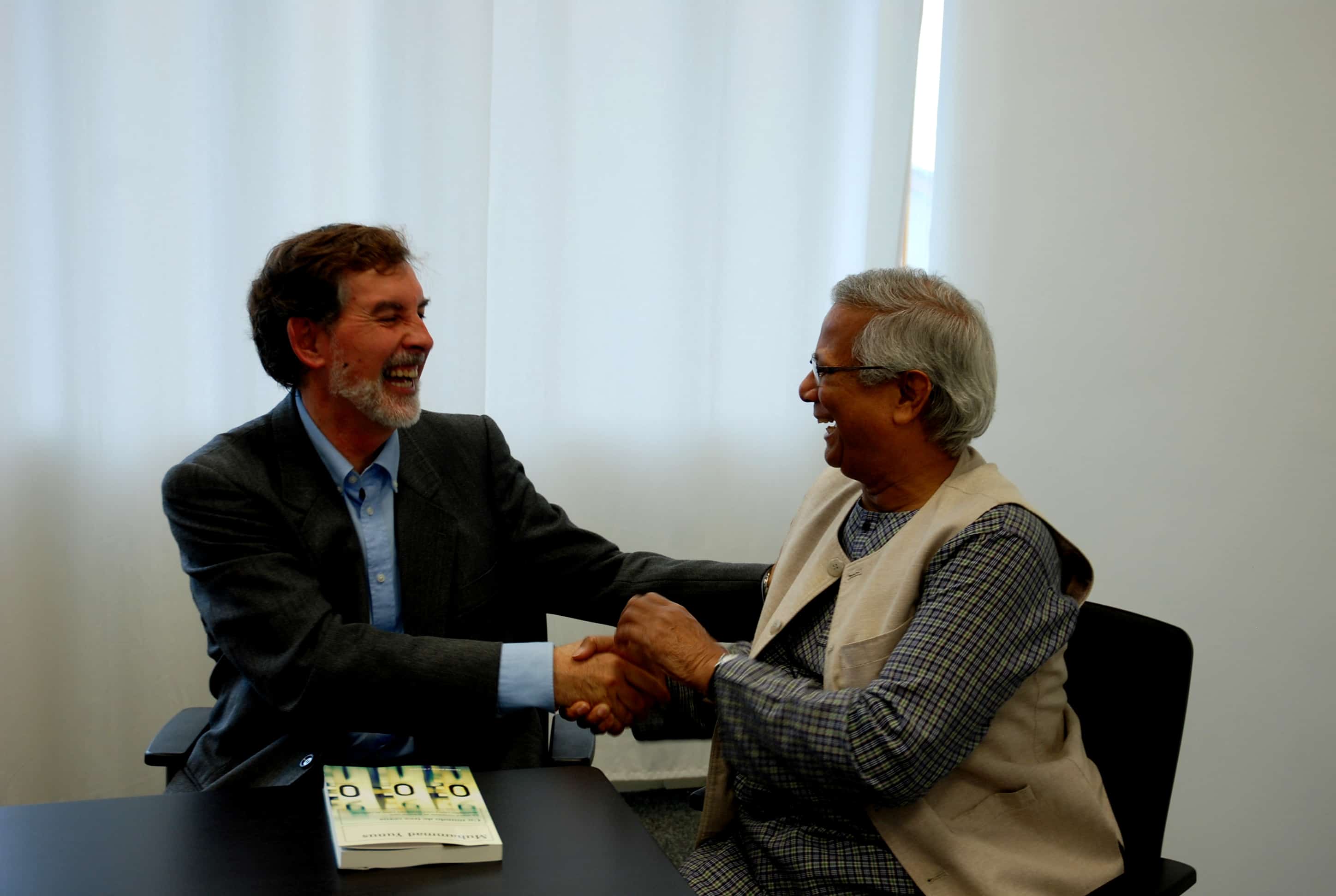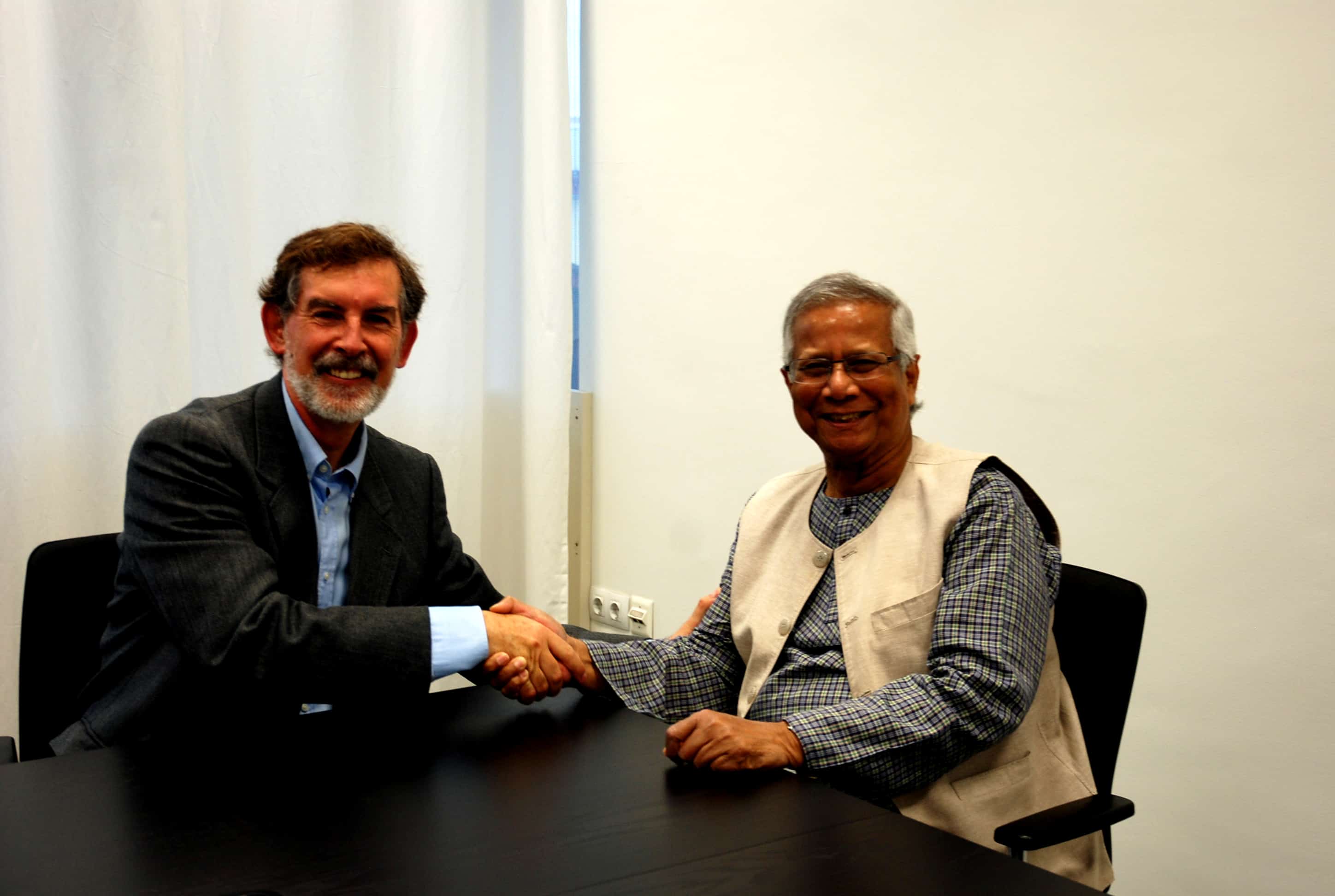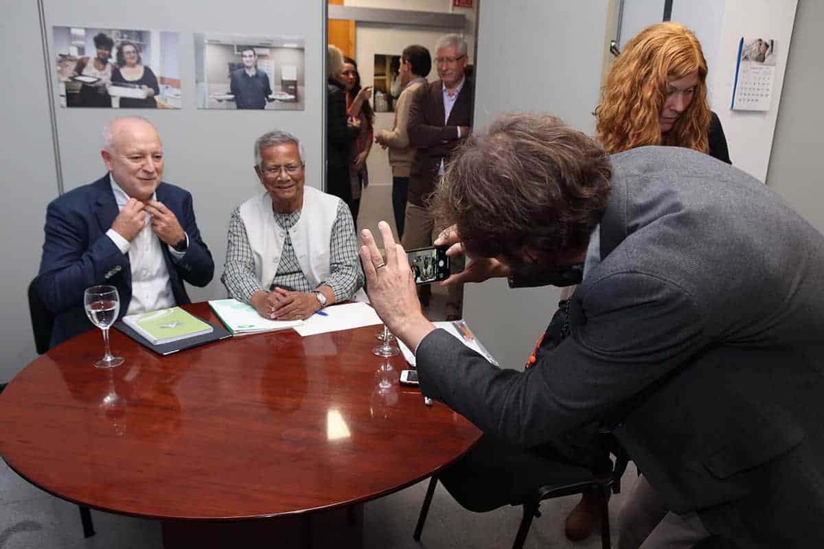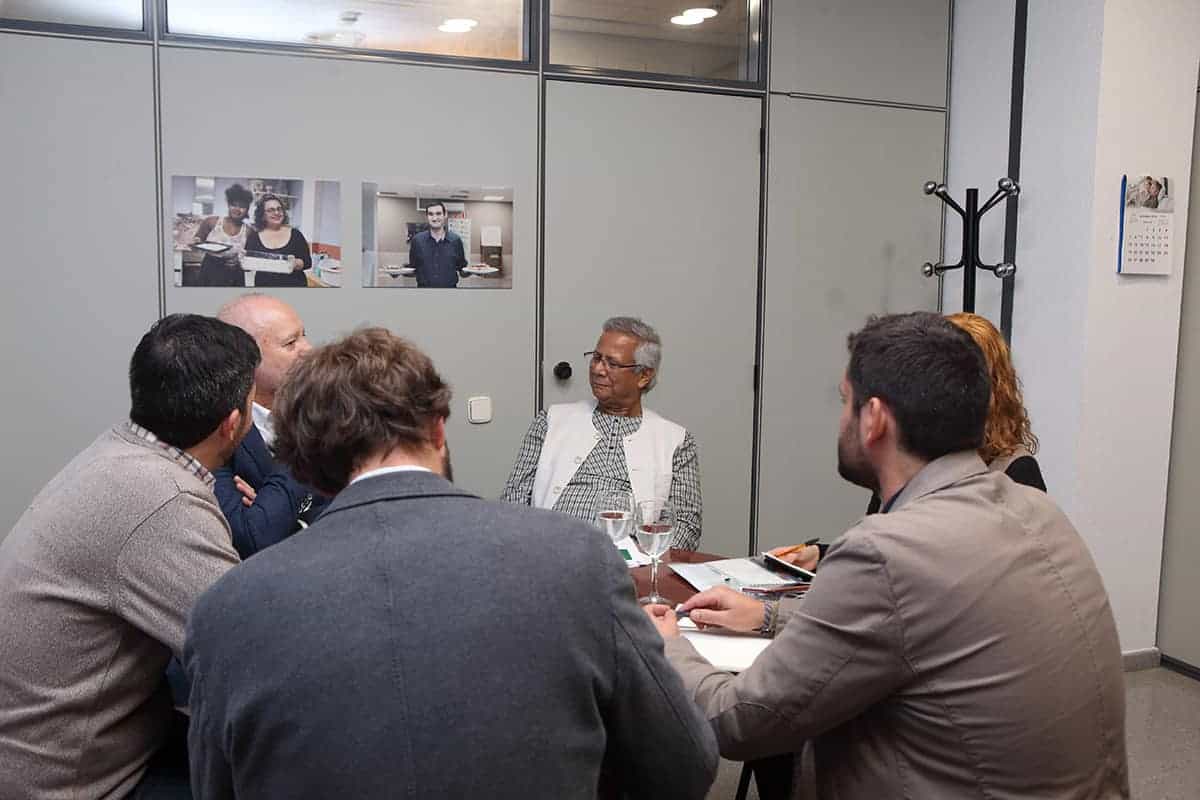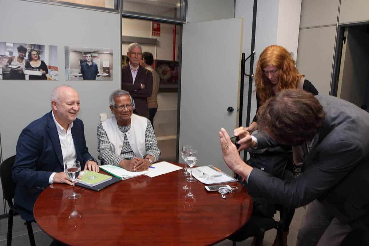 Tras la visita, Yunus se entrevistó con Joan Mir, Director General de Aneccop, como cooperativa de cooperativas, emblema de la Economía Social, en busca de sinergias futuras para apoyar el emprendimiento social.