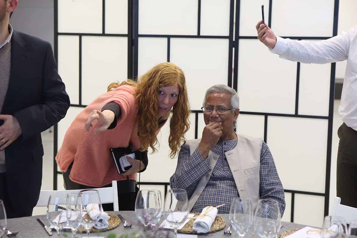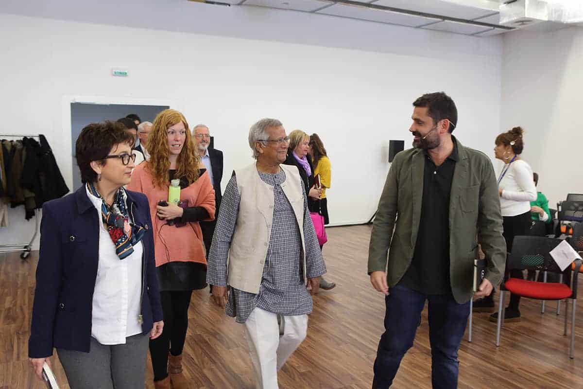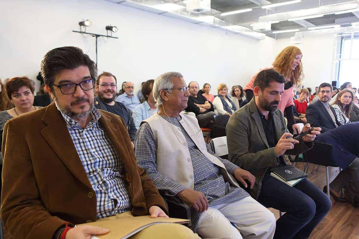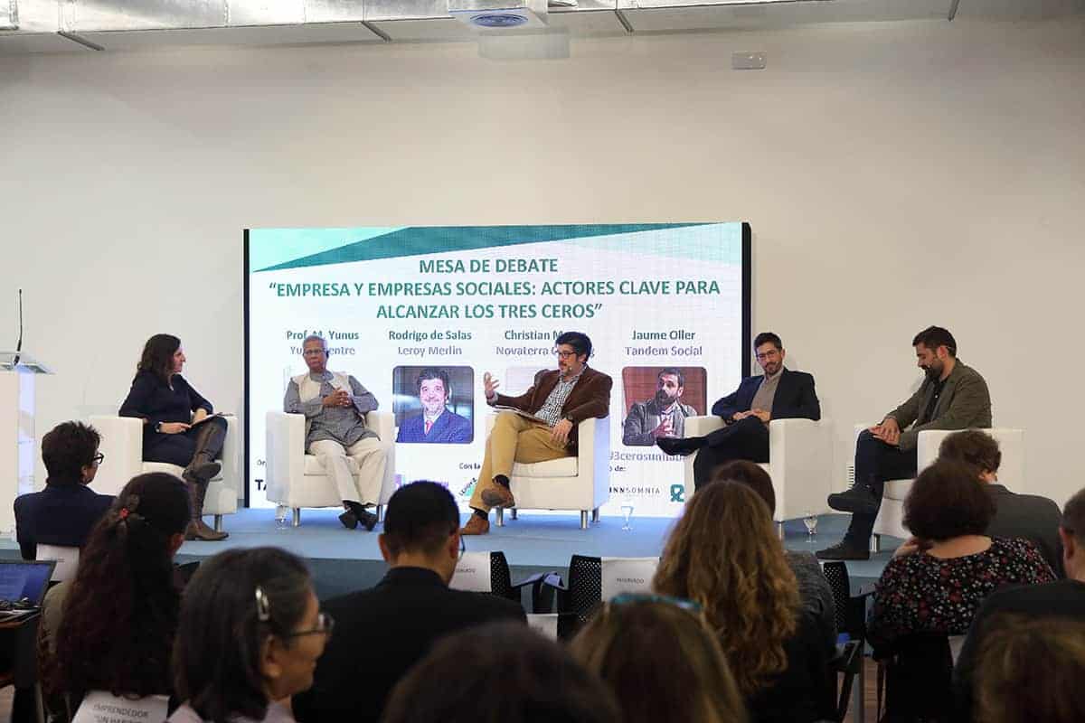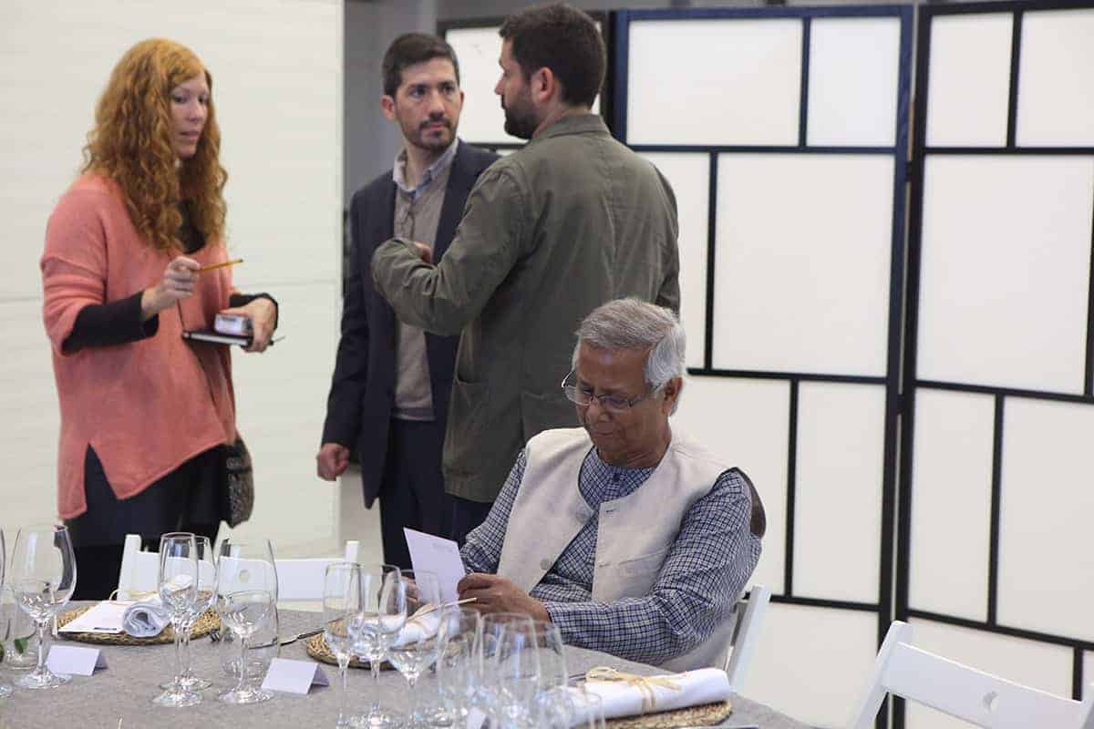 Tras la conferencia el profesor Yunus participó en una mesa redonda junto a representantes de Leroy Merlin, Tandem Social y Novaterra Catering Sostenible sobre la importancia del trabajo conjunto de empresas y empresas sociales.