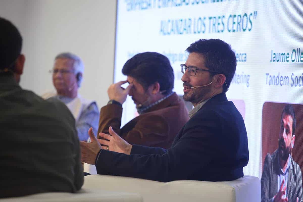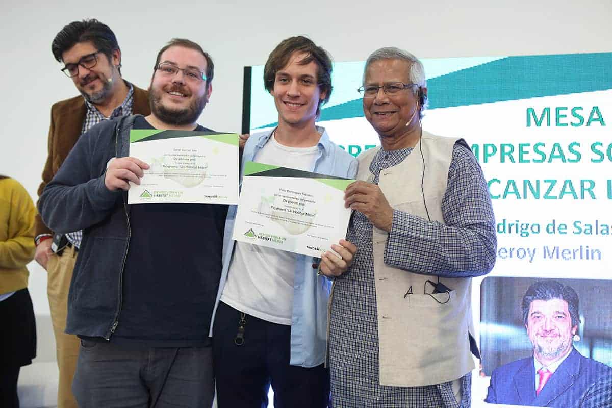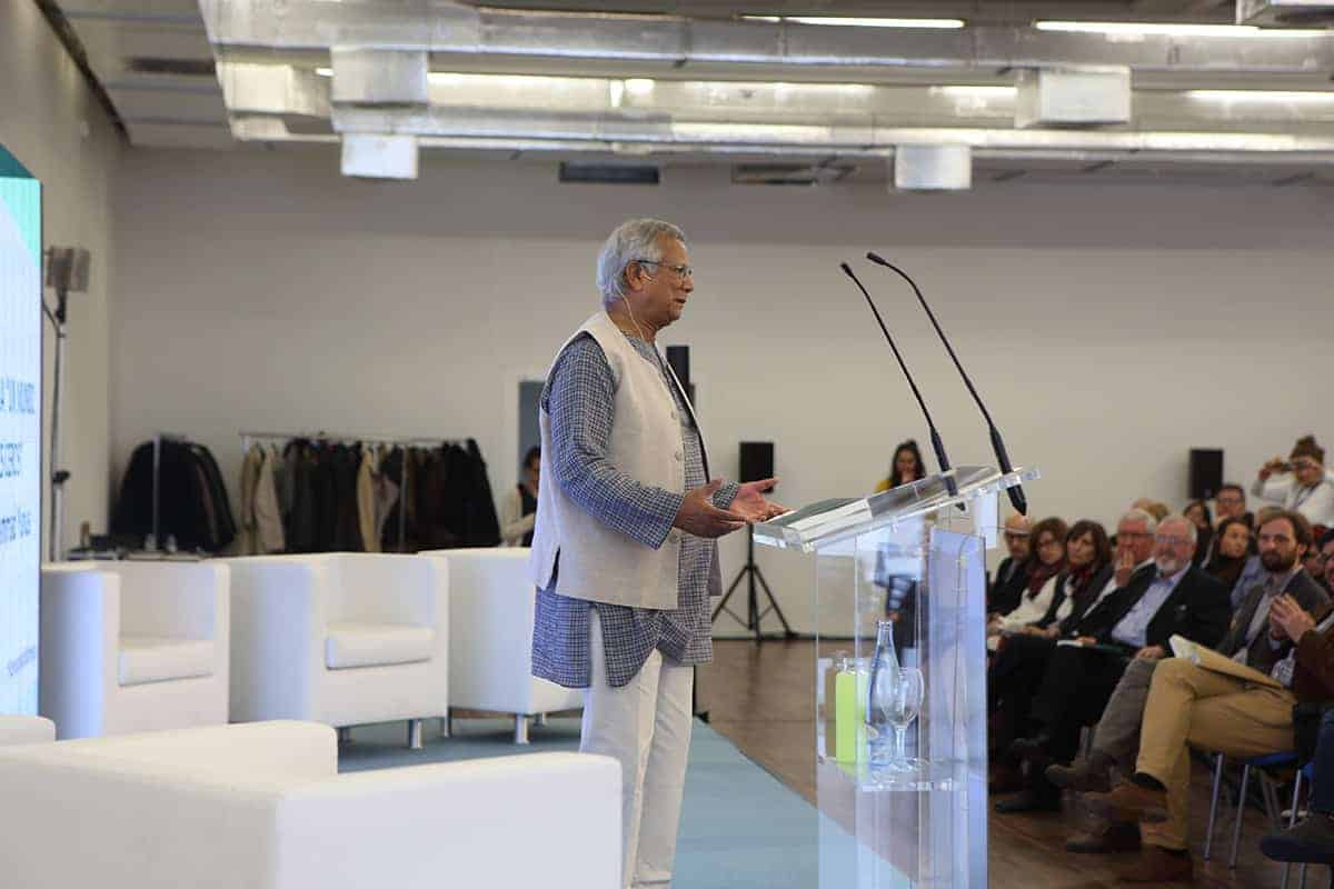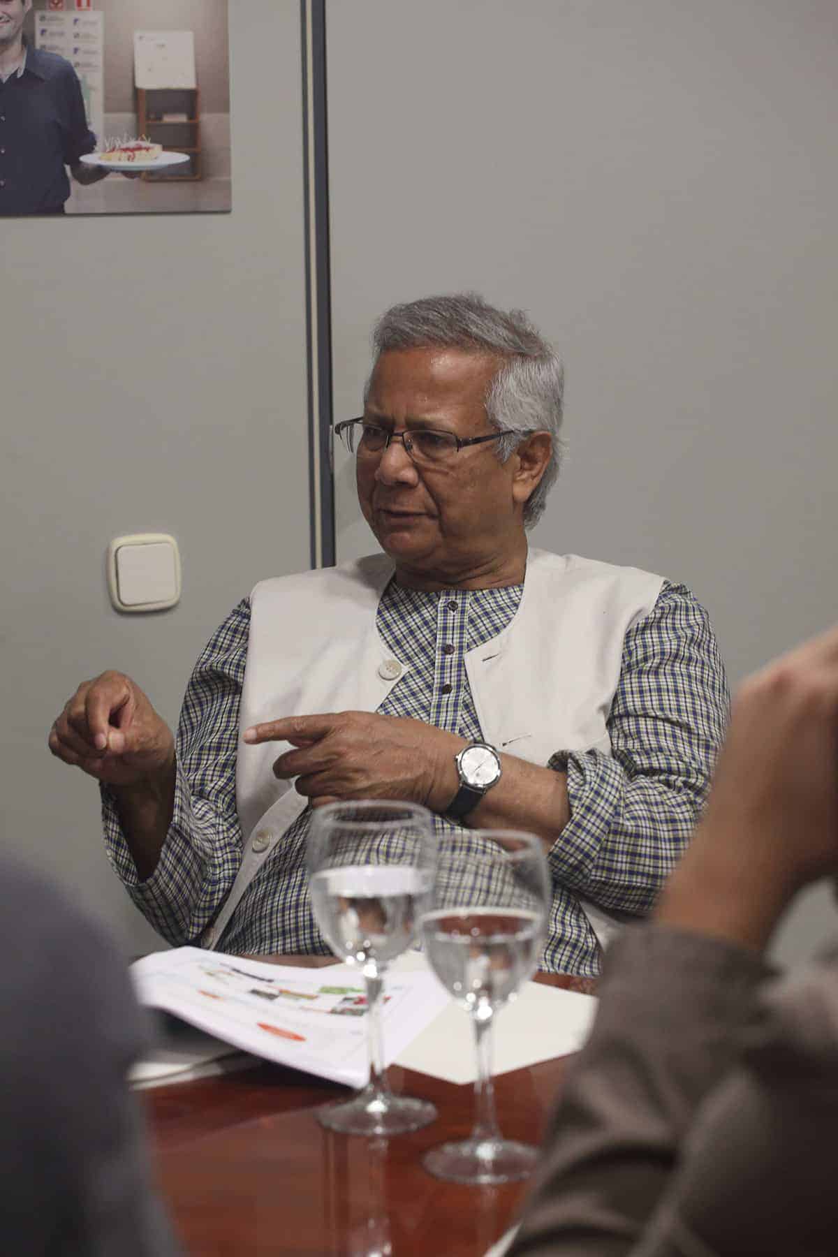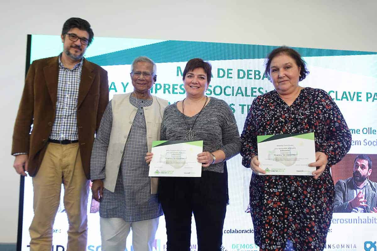 Tras la conferencia el profesor Yunus participó en una mesa redonda junto a representantes de Leroy Merlin, Tandem Social y Novaterra Catering Sostenible sobre la importancia del trabajo conjunto de empresas y empresas sociales.