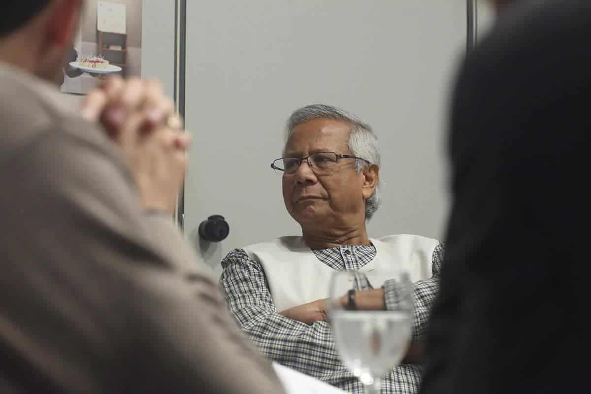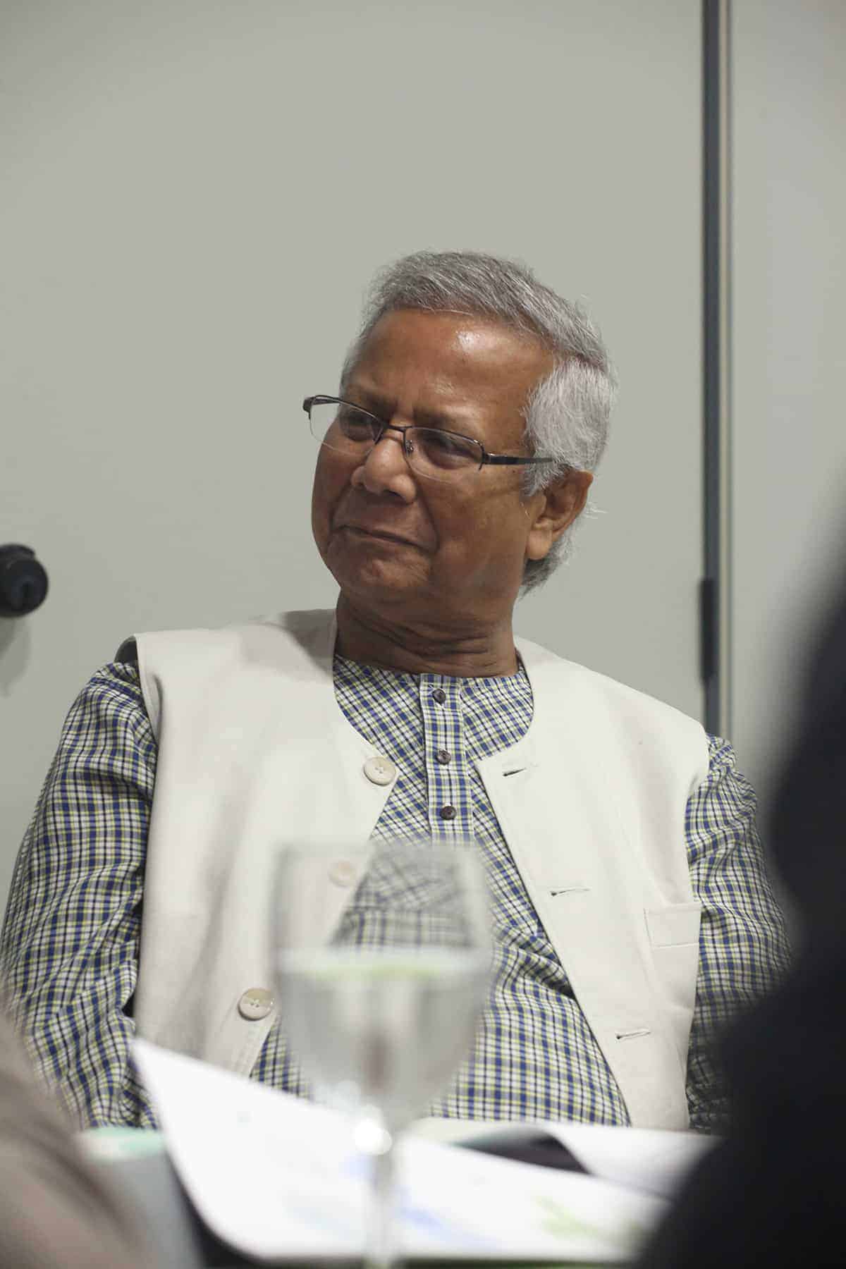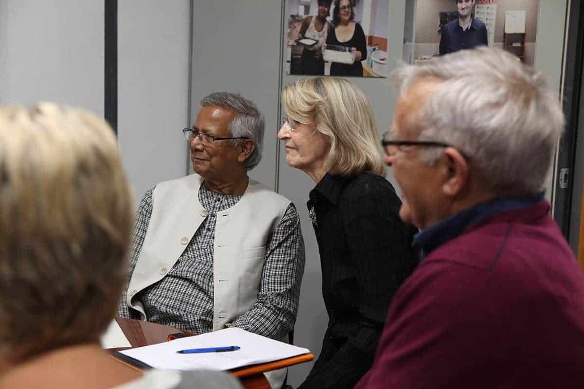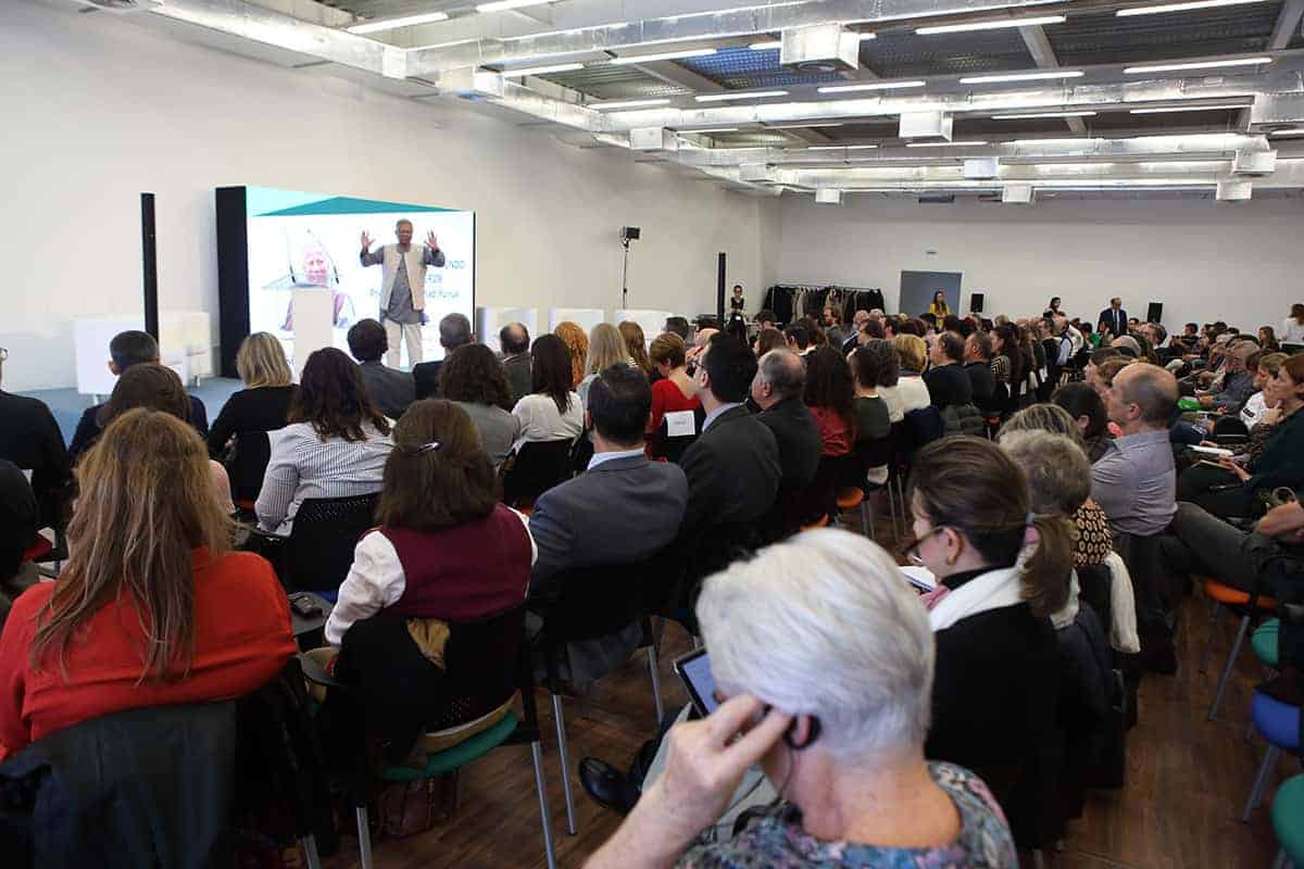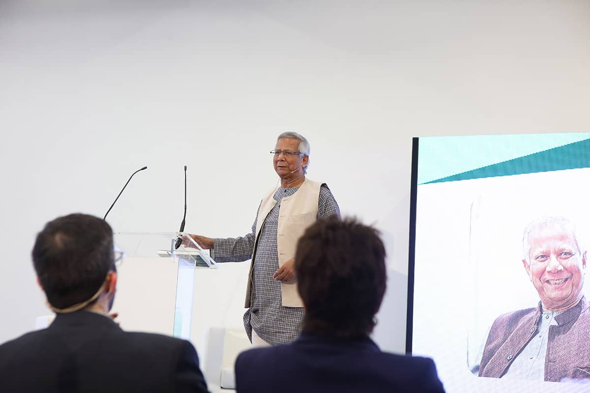 Tras la conferencia el profesor Yunus participó en una mesa redonda junto a representantes de Leroy Merlin, Tandem Social y Novaterra Catering Sostenible sobre la importancia del trabajo conjunto de empresas y empresas sociales.