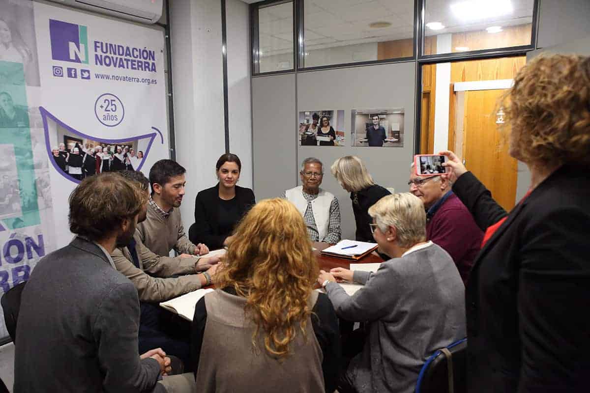 También tuvimos la oportunidad de mostrarles el proyecto Novaterra al equipo de gobierno de la Alcaldía de Valencia, antes de su reunión privada con Yunus, porque es necesario unos poderes públicos comprometidos con el fomento de las empresas sociales y el apoyo a los jóvenes y las jóvenes para emprender.
