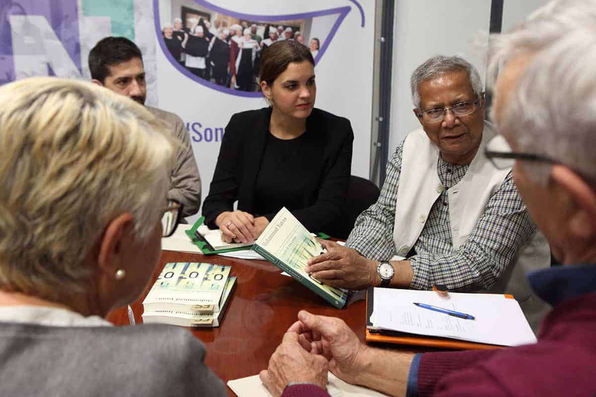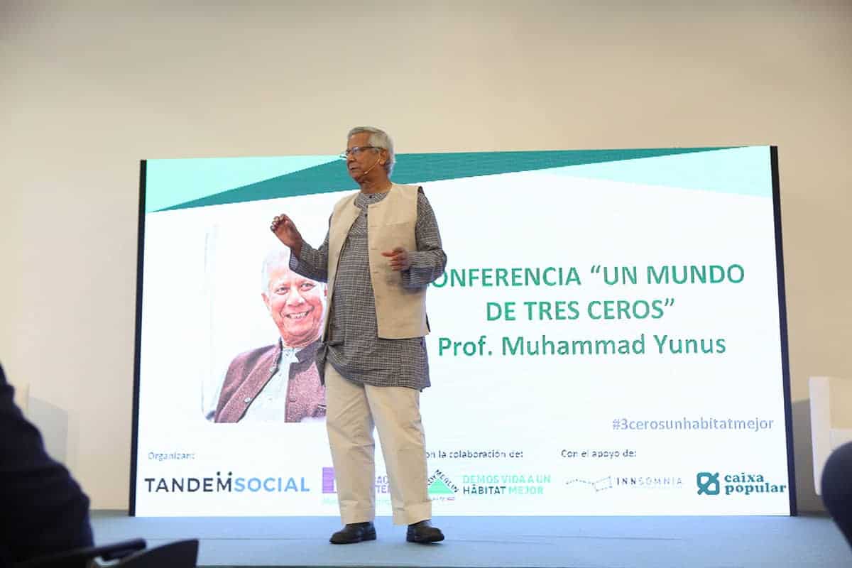 No hay mejor manera de contar lo que ha sido ser anfitriones del Nobel de la Paz Muhammed Yunus en su visita a Valencia para presentar su último libro «Un mundo de tres ceros. La nueva economía de pobreza cero, desempleo cero y cero emisiones netas de carbono», en colaboración con su partner estratégico en España, Tandem Social, a los que estamos enormemente agradecidos por elegirnos. Y no estuvimos solos. Como siempre, contamos con aliados para hacerlo posible, en este caso con la colaboración de Caixa Popular e Innsomnia.