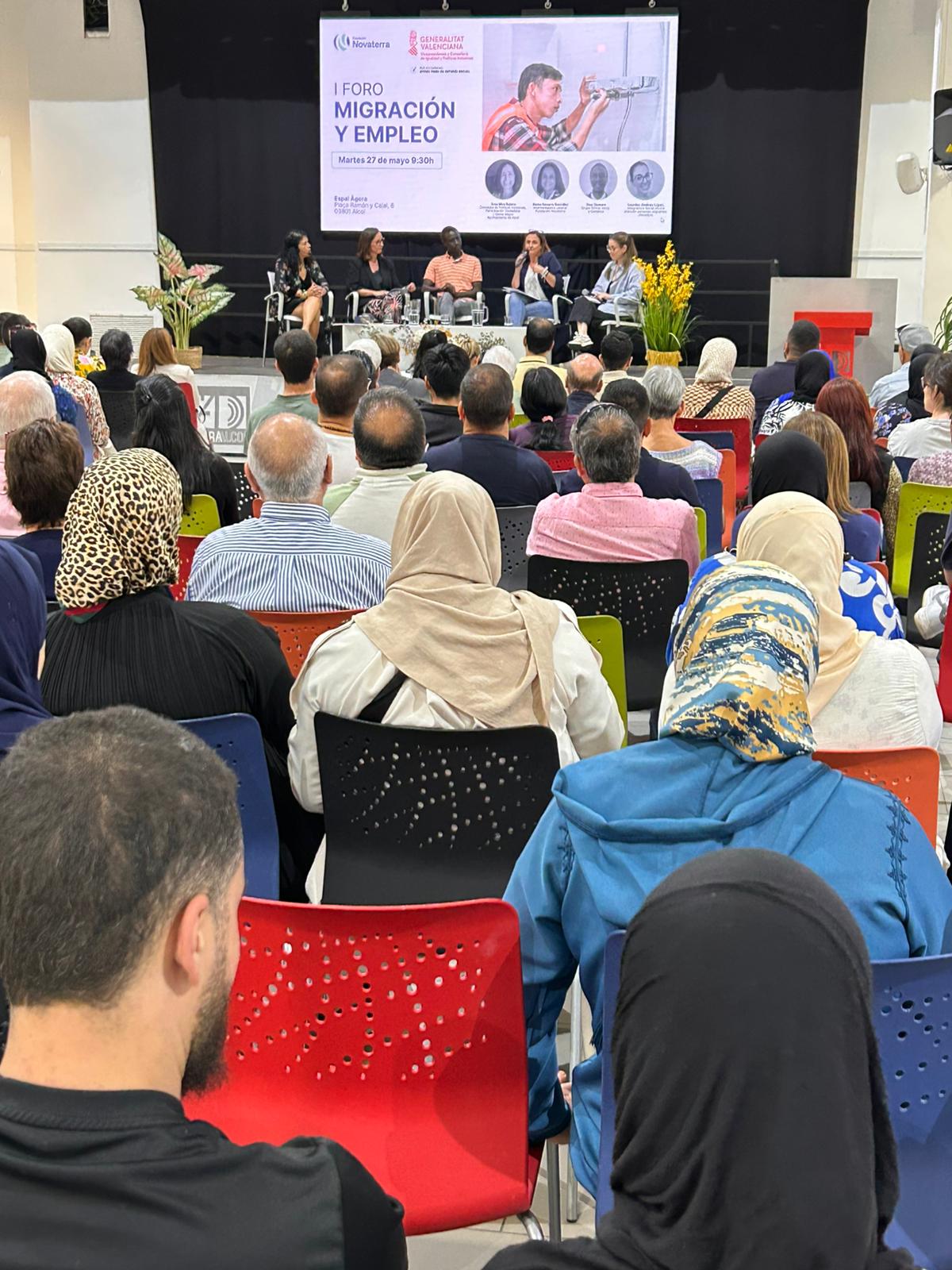 Con el aforo completo y la participación de más de 120 personas de más de 10 nacionalidades distintas, el I Foro de Migración y Empleo, organizado por Fundación Novaterra en el Espai Àgora de Alcoi, se consolidó como un espacio necesario de encuentro, reflexión y propuestas en torno a los desafíos y oportunidades de la inclusión sociolaboral de las personas migrantes.