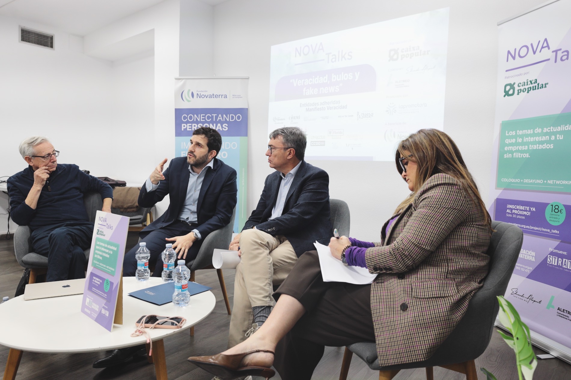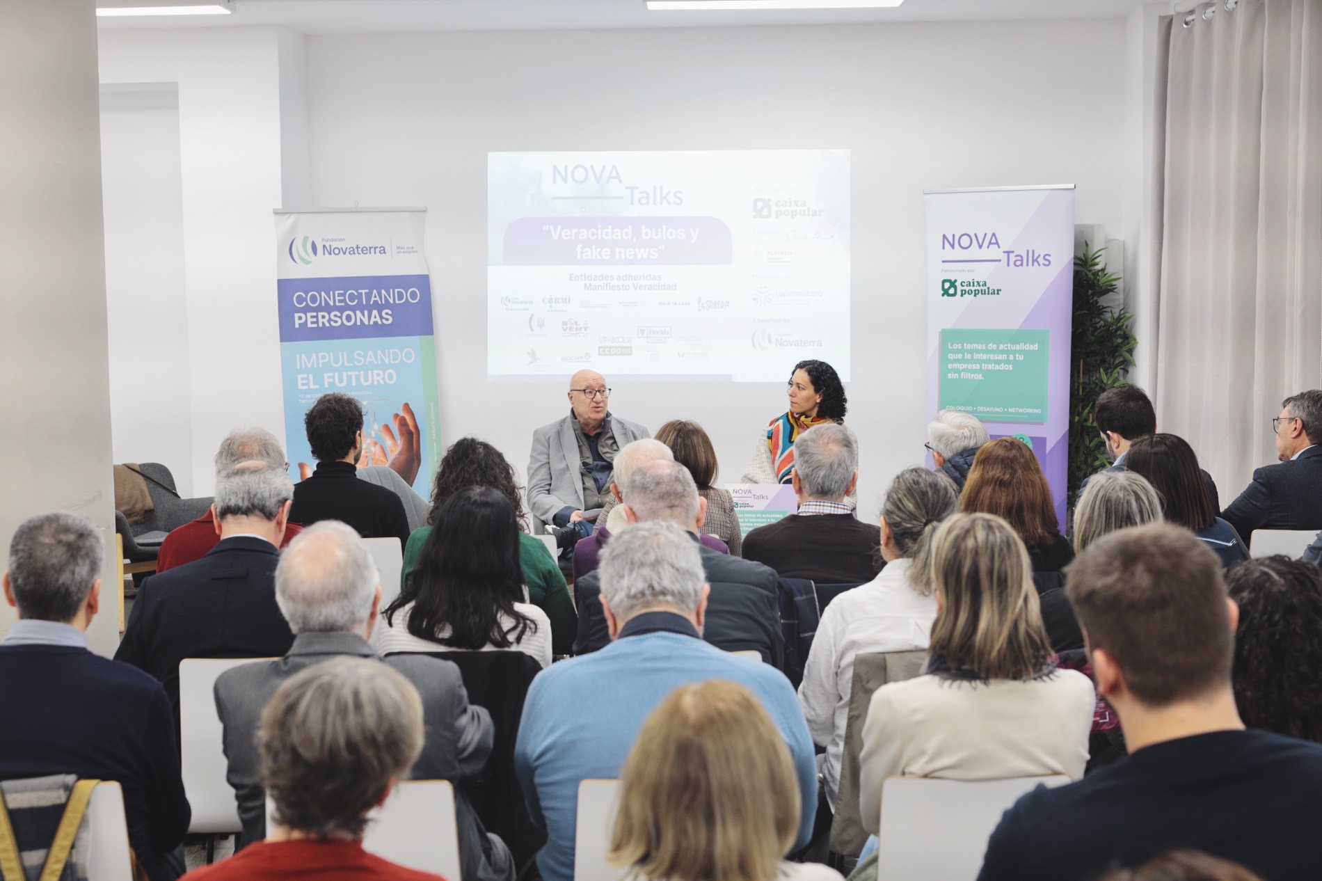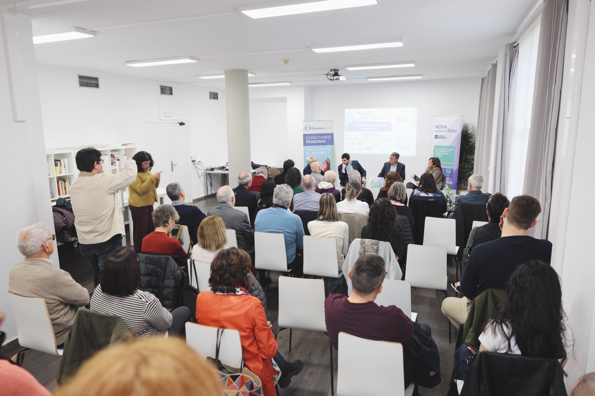 El encuentro, organizado por Fundación Novaterra con el apoyo de Caixa Popular, reunió a representantes de sindicatos, medios de comunicación, estudiantes y entidades preocupadas por la expansión de los bulos. Desde el equipo impulsor del Manifiesto de la Veracidad se subrayó que no cabe el silencio cómplice ante un fenómeno que invade todos los ámbitos de la vida social, económica y política.